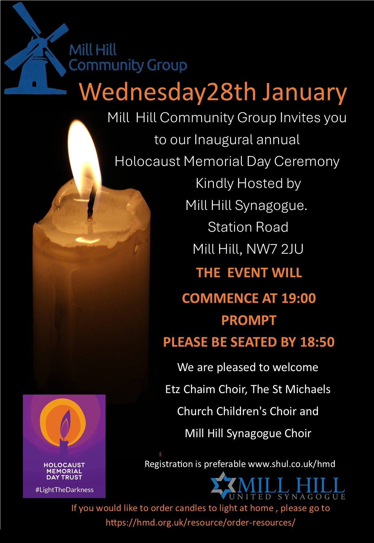 Wednesday 28th January at Mill Hill Synagogue
